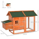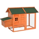 This PawHut Chicken Coop offers chickens a great living space featuring a nesting house, egg box, running box, asphalt roof, lockable doors, removeable tray, and open roof for easy access. Get this cosy hutch and let your animals live the dream.