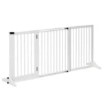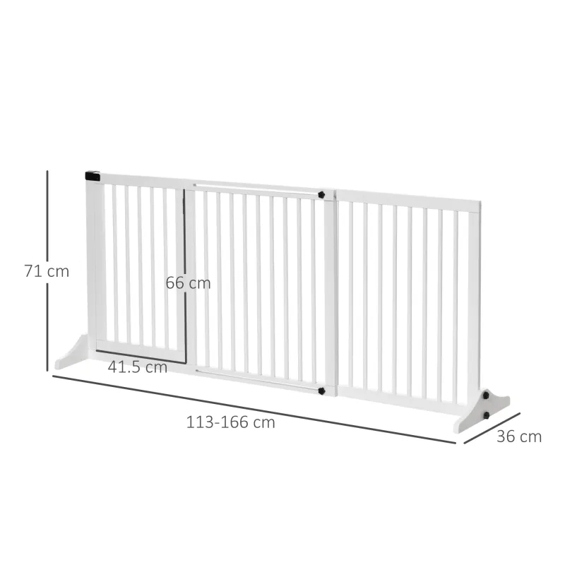 PawHut Freestanding Length Adjustable Wooden Pet Gate with Lockable Door 3 Panels White