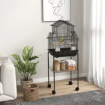 This PawHut bird cage oozes space and comfort, providing your birds with an excellent home to thrive. With two plastic perches, it’s great for finches, canaries, budgies and similar birds. It has a large front door, two sliding food doors and rolls effortlessly on four wheels. The bottom shelf keeps supplies close for extra convenience. Enjoy this easy-to-clean cage, featuring a removable tray that can be wiped clean, whilst the bottom net separates droppings for better hygiene.