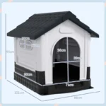 PawHut Plastic Dog Kennel with Windows, for Garden Patio, Medium and Large Dogs, 101 x 88 x 99cm – Grey