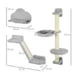 PawHut Three-Piece Wall-Mounted Cat Shelves, with Hammock, Ladder, Platforms, Scratching Post – Grey