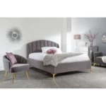 Pettine Double Ottoman Bed Wood & Fabric Grey 5 x 7ft