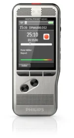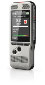 The Pocket Memo voice recorder takes dictation to a new level. Two microphones deliver superior audio quality for your dictations. Its robust yet lightweight stainless steel design offers perfect ergonomics for working over longer periods of time. Power saving features and a high capacity Li-ion battery offer extended recording time and easy charging through a standard USB connection.