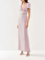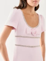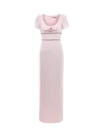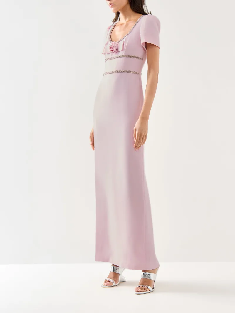 This Pink Crepe Crystal Trim Maxi Dress features a flowing silhouette crafted from soft crepe fabric, offering both comfort and elegance. The delicate crystal trim adds a subtle sparkle, making it perfect for special occasions or evening events. Its maxi length provides a graceful, elongating effect, ensuring you stand out with understated sophistication.