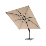 The 3m square parasol canopy, in stylish taupe, is made from strong 300g/m2 polyester which has a durable water resistant (DWR) coating to repel water, and is dirt-resistant. This parasol’s canopy provides a good level – UPF 30+ (up to 96%) – of protection from UV rays, and has a good level of colour fastness: the fabric will retain its colour for 160+ days.