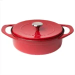 Pot Art Cast Iron Induction Shallow Casserole with Lid, 26cm, Red