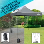 - Spacious Gazebo – This pop up gazebo is a spacious 3 x 4.5 x 3.05m with a durable weather-resistant powder-coated steel frame. You can fit up to 12 people, 4 tables and more under the canopy!