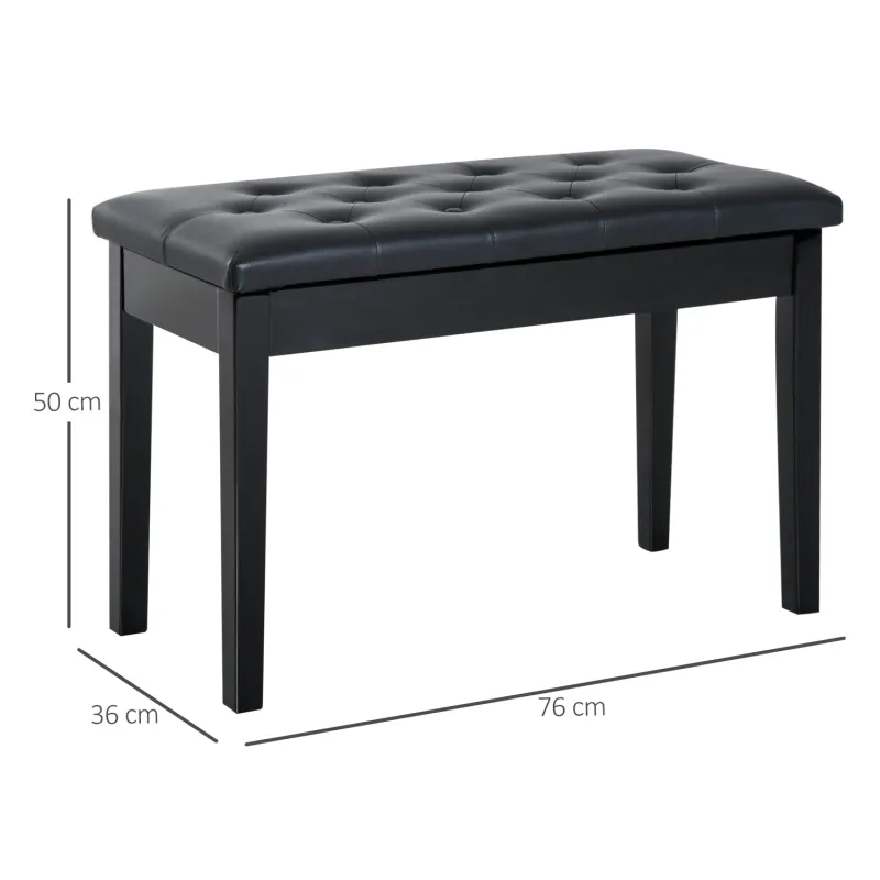 HOMCOM Black Faux Leather Two-Seater Piano Bench with Storage