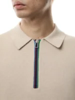 This Quarter Zip Polo T Shirt is made from 100% organic cotton, providing a soft and comfortable feel. The finely knitted design adds a touch of elegance to this wardrobe essential. Stay stylish and eco-friendly with this versatile piece.