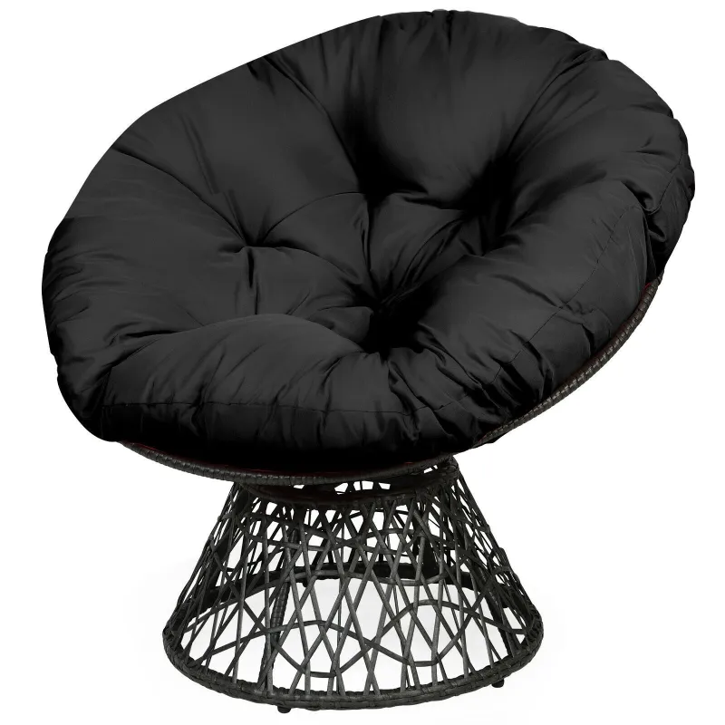 Home Rattan Furniture Rattan Papasan Chair with 360° Swivel and Soft Cushion-Black