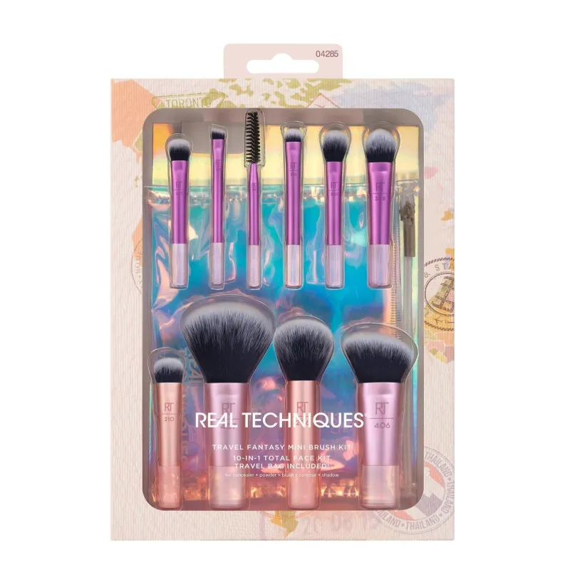 The Real Techniques Travel Fantasy Mini Brush Kit includes a variety of compact cruelty-free makeup brushes, perfect for achieving a flawless and radiant look.