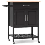 Rolling Kitchen Island Cart with Drawer and 2-Door Storage Cabinet-Black
