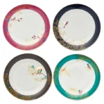 Sara Miller presents this beautiful 12 piece dinner set from the Chelsea collection. This colourful and stylish dinner set has been created from fine china and features 22-carat gold accents which enables you to build an intricate dining setting. Each plate and bowl has a different design and colour, featuring birds on luxurious golden branches and the colour tones of each draw on inspiration from around the world, making this a perfect gift for new homeowners or even just to upgrade your own personal collection.