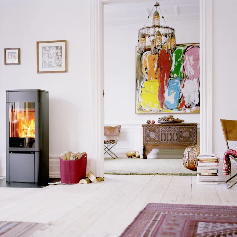 Scan 65 is available with or without side windows. A soap stone top can be added as an extra accessory. If you want a higher stove, you can buy an 80 mm steel base for this model.