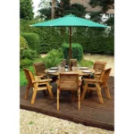 Enjoy drinks, snacks and meals with family and friends with this patio dining set. Practical and comfortable with a spacious, sturdy table and well-designed chairs. This versatile outdoor furniture set can transform and improve any patio or garden area. Wood, with the right care and attention, solid wooden garden furniture can last a lifetime. It doesn’t rust like metal and neither will it lose its colour in the sun like some plastic garden furniture. You and 5 others will be able to relax, enjoy snacks, and chat in the sunshine.