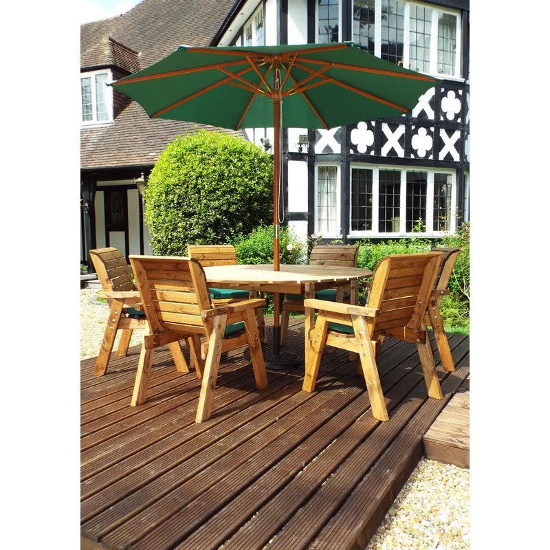 Scandinavian Redwood Garden Patio Dining Set by Charles Taylor – 6 Seats Green Cushions