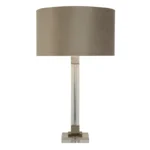 The lamp’s square base adds a contemporary and stylish element to its design, anchoring the lamp securely while enhancing its overall visual appeal. The satin nickel colour of the lamp complements both traditional and contemporary interiors, adding a warm and inviting ambiance to any room. With the added benefit of a 6-degree tilt angle, this lamp offers versatile lighting options, allowing you to adjust the direction of light to create the perfect atmosphere. Whether you need focused task lighting or a soft, ambient glow, the Scarborough lamp provides flexibility to suit your preferences. The lamp comes complete with a taupe shade, featuring a luxurious velvet outer layer and a durable plastic inner lining. This combination ensures optimal light diff