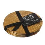Selbrae House presents their Round Flat Hammered Coasters in Gold, beautifully handcrafted, these coasters would certainly bring a stylish look to your dining table settings. Hand-tied with a decorative ribbon, these coasters would make a lovely gift or a treat for yourself.
