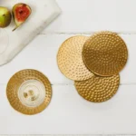 Selbrae House Flat Hammered Stainless Steel Set of 4 Coasters – Gold