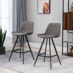 Home Indoor Furniture Set Of 2 Bar Stools Vintage Microfiber Cloth Tub Seat Padded Comfortable Steel Frame Footrest Quilted Home Bar Cafe Kitchen Chair Stylish Dark Grey
