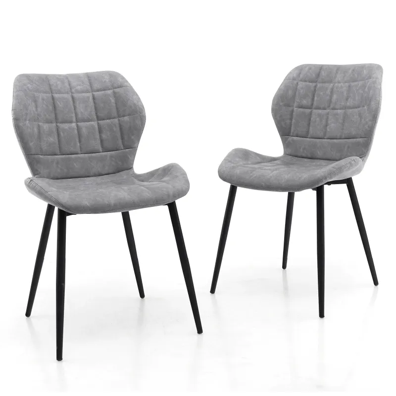 This armless kitchen chair is made of a high-quality metal frame, soft leathaire fabrics and supportive sponge, combining sturdiness and comfort. You may have a meal with your family members for a long time, so the ergonomic dining chair with a spacious seat and an ergonomic wide backrest can help all of you relax completely. In addition, the kitchen side chair is designed with 2 adjustable foot pads, which can make the upholstered dining chair remain stable and not wobble. Therefore, decorate your living space with this versatile and stylish dining chair set. If you are looking for such a product, do not hesitate to buy it! Comfortable Sitting Experience: Equipped with a spacious seat 47 x 39cm (L x W) and an ergonomic backrest, the armless kitchen chair set can ensure long-lasting comfort to enhance your overall dining experience or provide an enjoyable reading and relaxing time. Carefully Selected Materials: The integrative seat cushion and backrest are filled with a thick sponge and covered with premium skin-friendly leathaire fabrics, which ensure a pleasant and comfortable sitting experience for meal times. Plus, the leathaire fabrics are stain resistant, making cleaning a breeze. Provide Outstanding Stability: The 2 wear-resistant front foot pads combined with 2 adjustable rear foot pads can avoid scratches on the floor of your home, offering a sturdy and stable seating solution. Besides, the robust metal frame also provides peace of mind during daily use. Modern Style for All Rooms: The mid-century modern side chairs set can elevate the aesthetics of your living space, such as the kitchen, dining room, or living room, blending seamlessly with various decor styles for a chic and stylish look. Easy to Assemble: Effortlessly put together the dining chairs set of 2 with simple assembly instructions. The installation process is so simple that it can save you time and hassle, so you can enjoy your new stylish seating addition in no time.