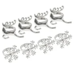 Set Of 4 Christmas Napkin Rings Silver Metal Table Decoration