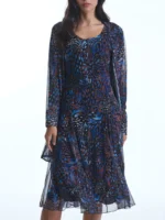Susannah Dark Teal Tie Neck Pointelle Fit And Flare D
