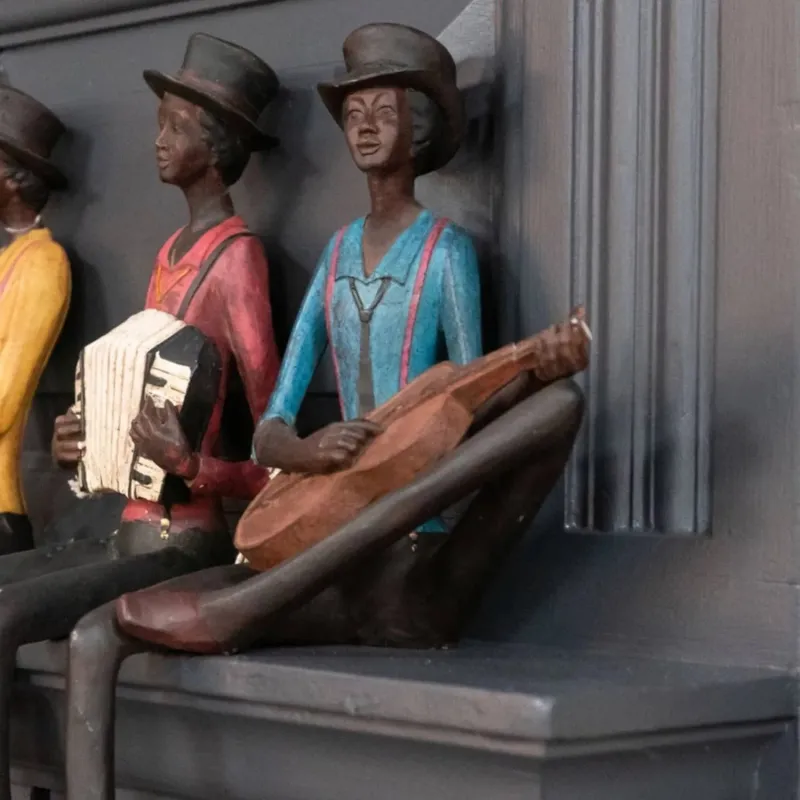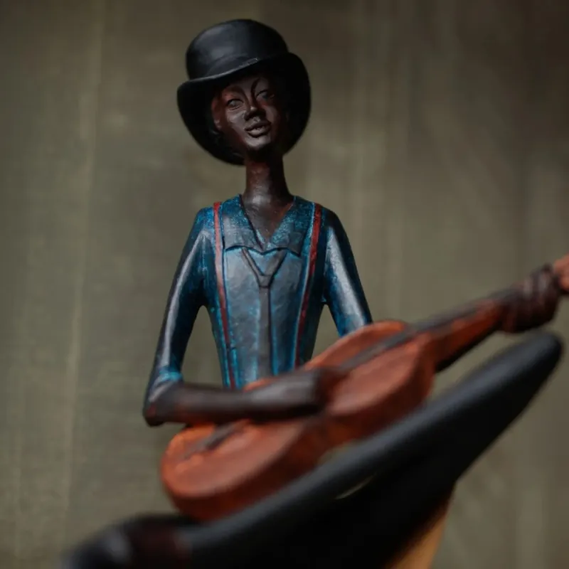 Made from durable resin with intricate detailing and a hand-painted finish, this jazz guitarist ornament adds personality and artistic flair to your space. Whether displayed in a living room, hallway, or music room, it creates a striking focal point that complements vintage, eclectic, and contemporary interiors. The fine craftsmanship and details make it a charming addition to any music lover’s home.