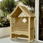The Rose Arbour with its classical look and large comfortable seat with sloping back will enhance your garden and provide somewhere to sit, relax and enjoy the view. (Imperial measurements are rounded so please refer to the metric sizes for accuracy) Supplied in its natural pressure treated finish; painted model shown is for illustration only. Manufactured in the UK, the heavy duty construction ensures a sturdy yet attractive arbour and all timber is pressure treated Forest Stewardship Council (FSC) Certified to produce an environmentally friendly and quality garden building. Dimensions shown are for the exterior wall of the building.