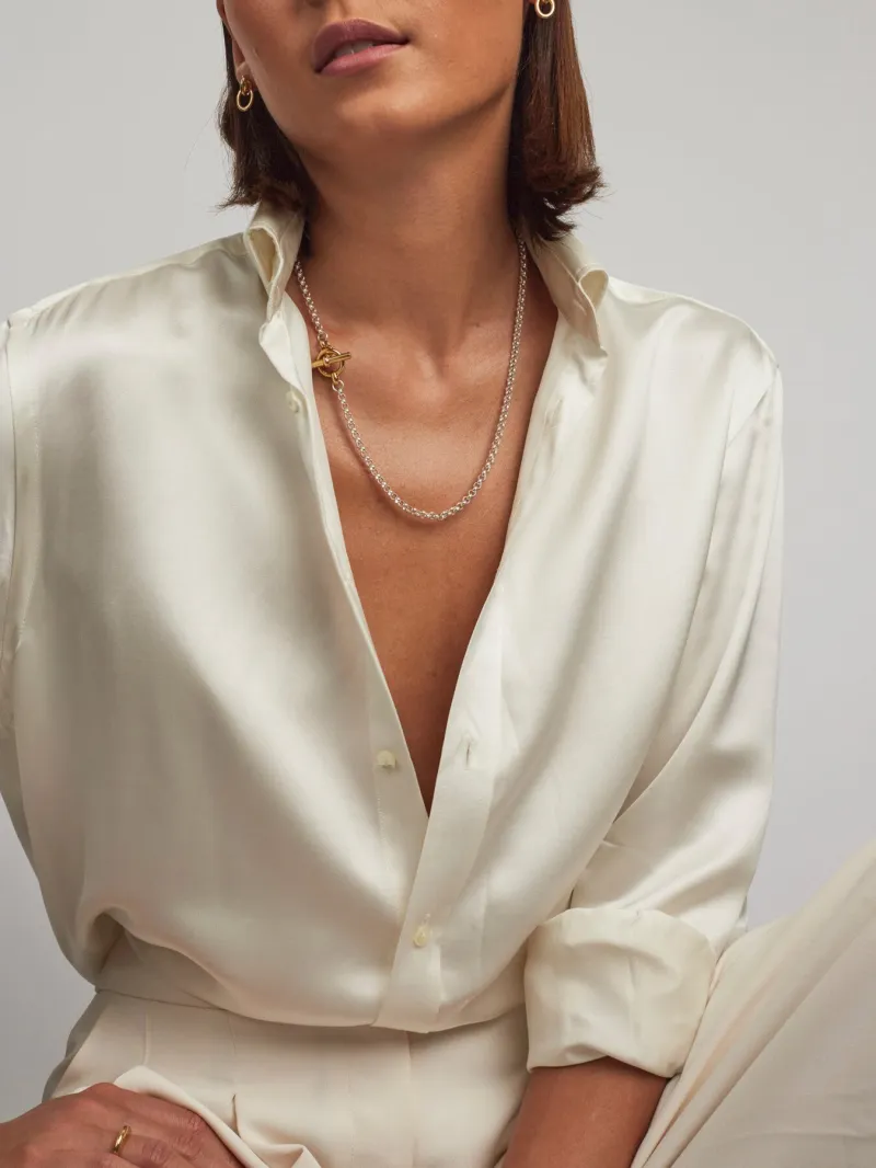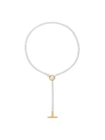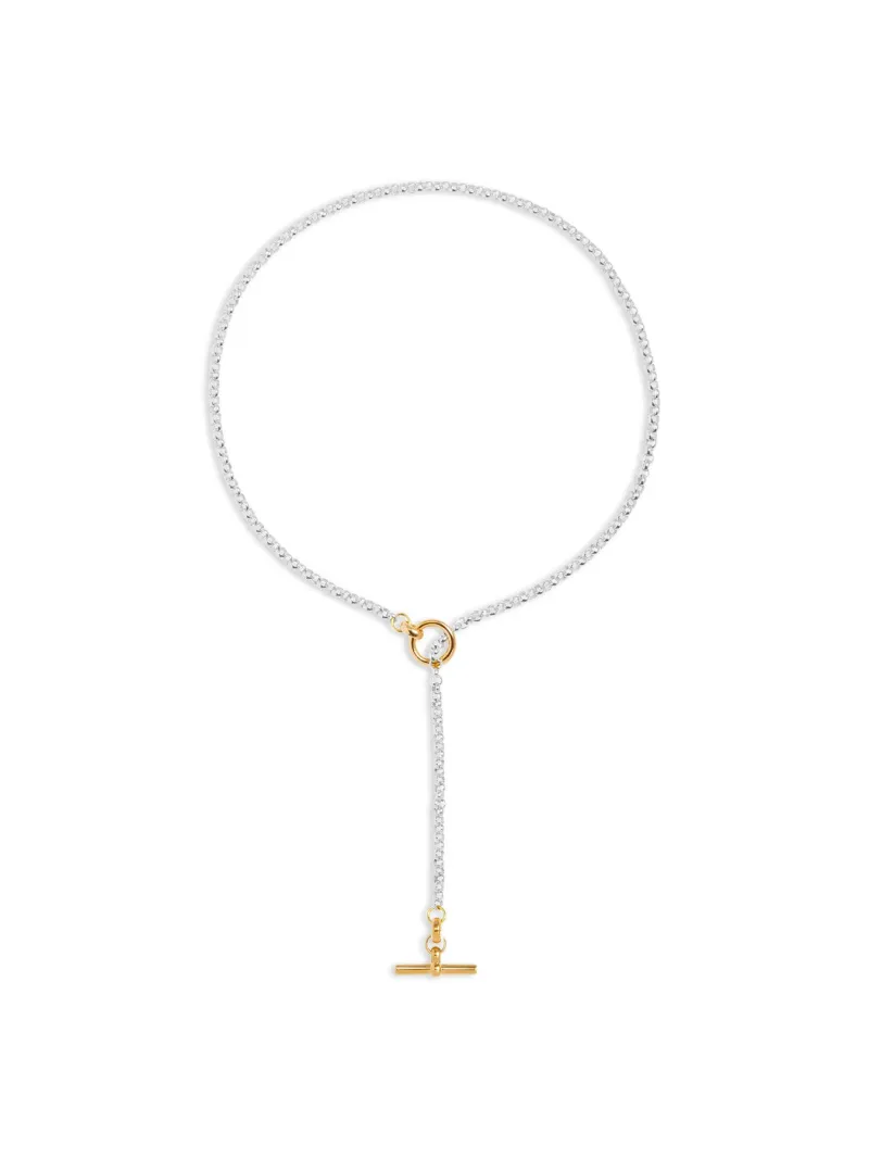 This classic Sterling Silver necklace with Gold plated pendants is a must have for the whole year round. It is a combination of our popular belcher chain and the classic Tilly Sveaas Eternity Ring and T-bar.