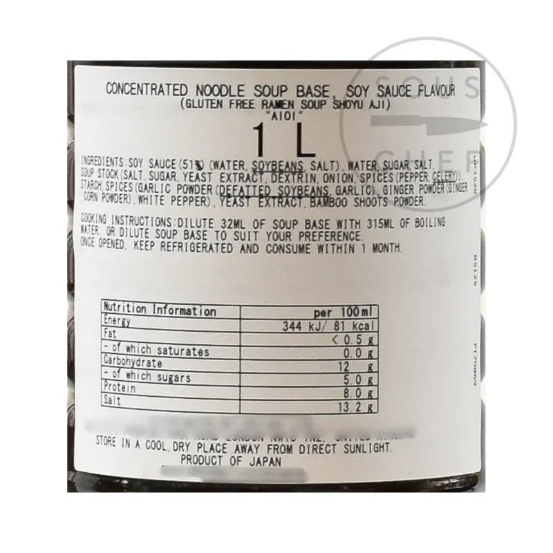 Shoyu ramen soup base lets you make soy sauce ramen soup in minutes. The concentrated stock is bursting with the salty, umami flavour of Japanese soy sauce. Ginger, garlic and white pepper add hints of spice and warmth.