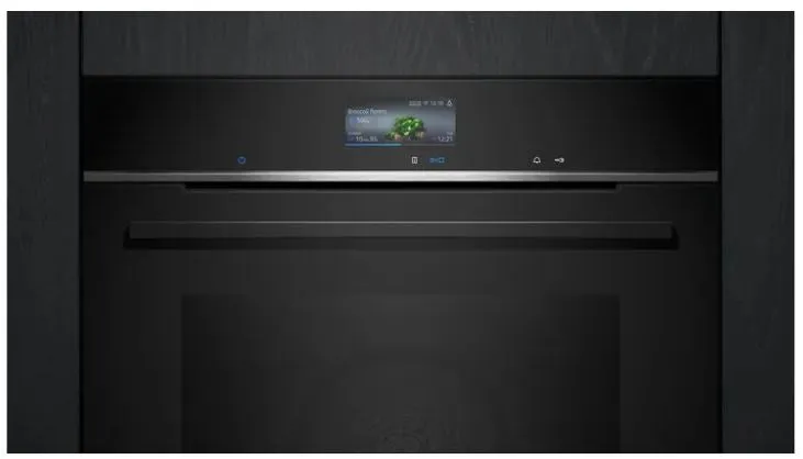 Experience the next level of cooking with the Siemens HB772G1B1B iQ700 Pyrolytic Multifunction Single Oven in BLACK. The advanced 3D Hot Air Plus system ensures perfect results on every level, while the innovative TFT display provides complete control over all oven functions. With humidClean Plus, cleaning has never been easier – simply vaporize soapy water to soften dirt for effortless removal. Elevate your cooking game with this state-of-the-art oven.