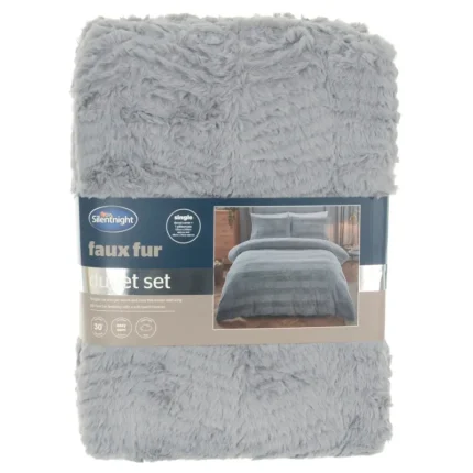 Silentnight Faux Fur Duvet Set Grey Long Pile Easy Care