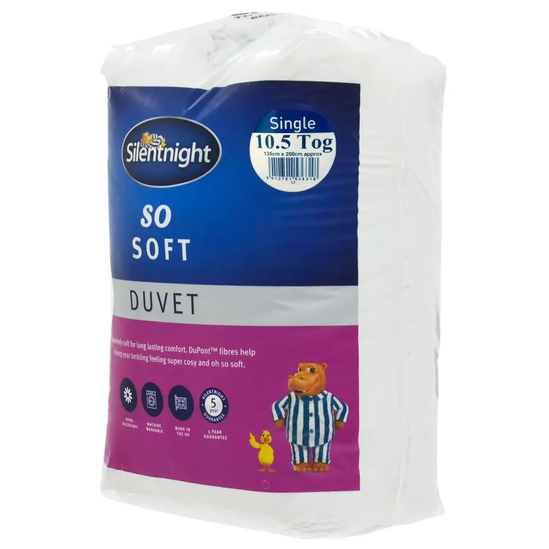 Snuggle up with the super soft comfort of this Silentnight So Soft Duvet. The So Soft quilt is deeply filled for long lasting comfort. The DuPont fibres inside are soft and bouncy to keep your quilt feeling super cosy and oh so soft.