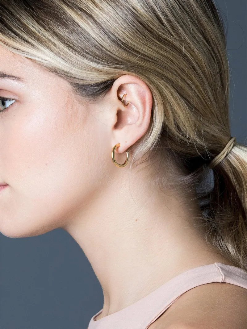 Minimal in design, these enchanting, gold plated hoops – the smallest in our collection – are an absolute style staple. Wear day in, day out for a less-is-more look. The hoop is 1.5cm in drop and 3mm thick.