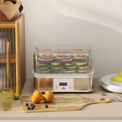 HOMCOM 5 Tier Food Dehydrator, 245W Stainless Steel Food Dryer Machine with Adjustable Temperature, Timer and LCD Display for Drying Fruit, Meat, Vegetable, Jerky and Pet Treat, White