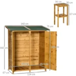 Reclaim your outdoor paradise with this tall and slender vertical storage shed from Outsunny! Crafted from durable materials, this tool cabinet features a coat of protective paint to shield it from light weather damage, plus a sloped asphalt roof so liquid runoff won’t penetrate. A lockable door keeps things safe, while a movable storage table provides handy convenience. L-shaped fixed fittings and ground nails secure the structure firmly to the ground.
