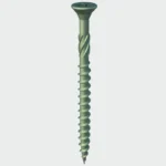 Economical softwood Decking Screws with a double countersunk head and a Pozi 2 recess. They have an organic green plating able to withstand 500 hours of salt spray testing and a sharp point for easy penetration combining high clamping results.
