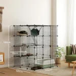 - Customizable layout: Comprising 63 panels, this wire cat cage allows you to DIY the structure into various shapes to fit your space and meet your cat’s preferences. A hammock can be hung anywhere to serve as their cradle.