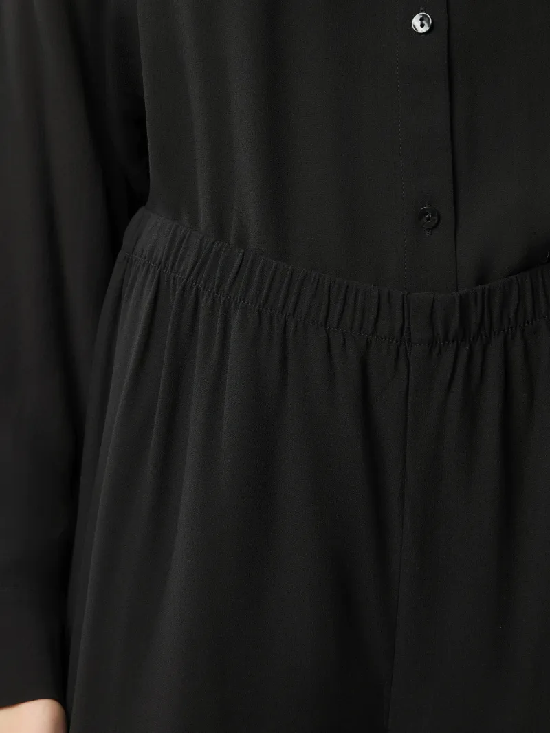 An elevated essential. The timeless straight pant with an elastic waistband and ankle-baring length. In the signature Silk Georgette Crepe, these are perfect for day or night.