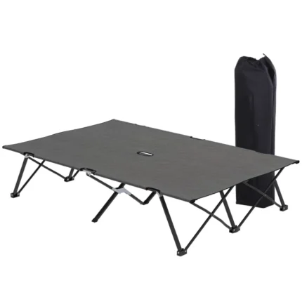 Outsunny Double Camping Folding Cot Portable Sleeping Bed, Charcoal Grey