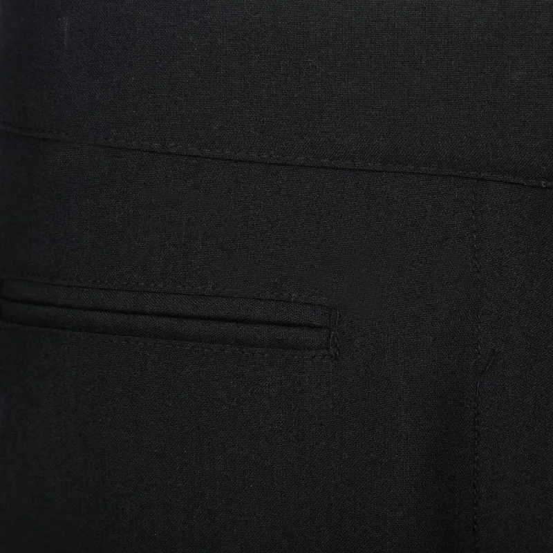 p>Slim leg trouser with hook and bar fastening and stylish faux pocket details.
