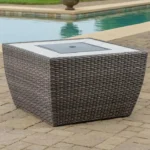 Make outdoor entertaining a year-long activity with the Pellington 5 Piece Fire Chat Set from SunVilla. Four generously proportioned swivel glider lounge chairs surround a curved base table-height fire pit. Handwoven all-weather wicker is meticulously wrapped around rustproof aluminium frames for a stylish look, but ensure your set retains its looks for seasons to come. From the starburst, hand-laid tile top of the fire table to the Sunbrella performance fabric cushions and accent pillows give this fire chat set a standout designer appeal.