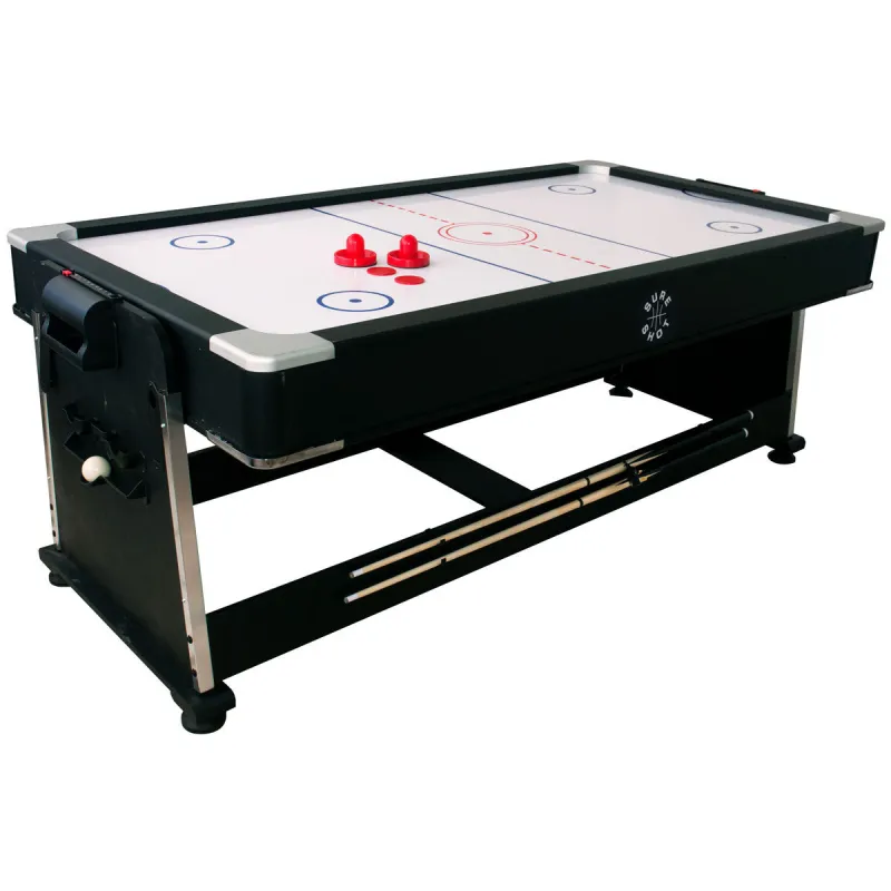 The Sure Shot 3-in-1 Multi Games table with a rotational design which allows you to change easily between pool, air hockey and table tennis, as well as a dining table option which can also be used for many other activities. The design of the table allows you to switch quickly from one activity to the next with ease. The great space saving design means that it only requires floor space of one table. With a unique flip-over design, and quick and easy game change lever system, it takes seconds to change from one game to another. Built to last and full of accessories, it comes with everything you need and is a complete games-room in one table.