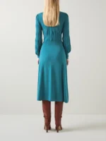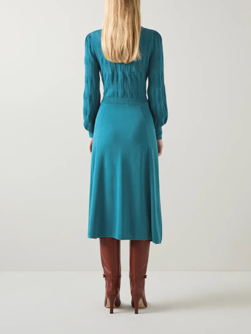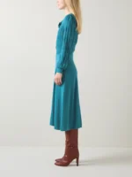 Susannah Dark Teal Tie Neck Pointelle Fit And Flare D