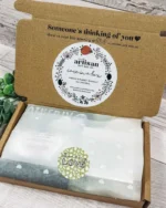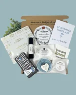 A gorgeous mini postal box of self-care and wellness for a friend, work colleague or family member going through a tough time. This bereavement care package is comprised entirely of natural and vegan products that are also cruelty-free and eco-friendly. Self-care is crucial during times of loss, and this sympathy hamper offers an array of items to promote it.