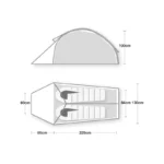 The Solar Photon 2 has two doors, one at the front and one at the back, which provide easy access and increased ventilation. The tent’s porch area also has a zippered door, which can be used as an additional entrance or to create a sheltered cooking area. The tent’s compact size and lightweight design make it easy to carry, with a weight of just 1.2 kg and a packed size of 40 x 12 cm.