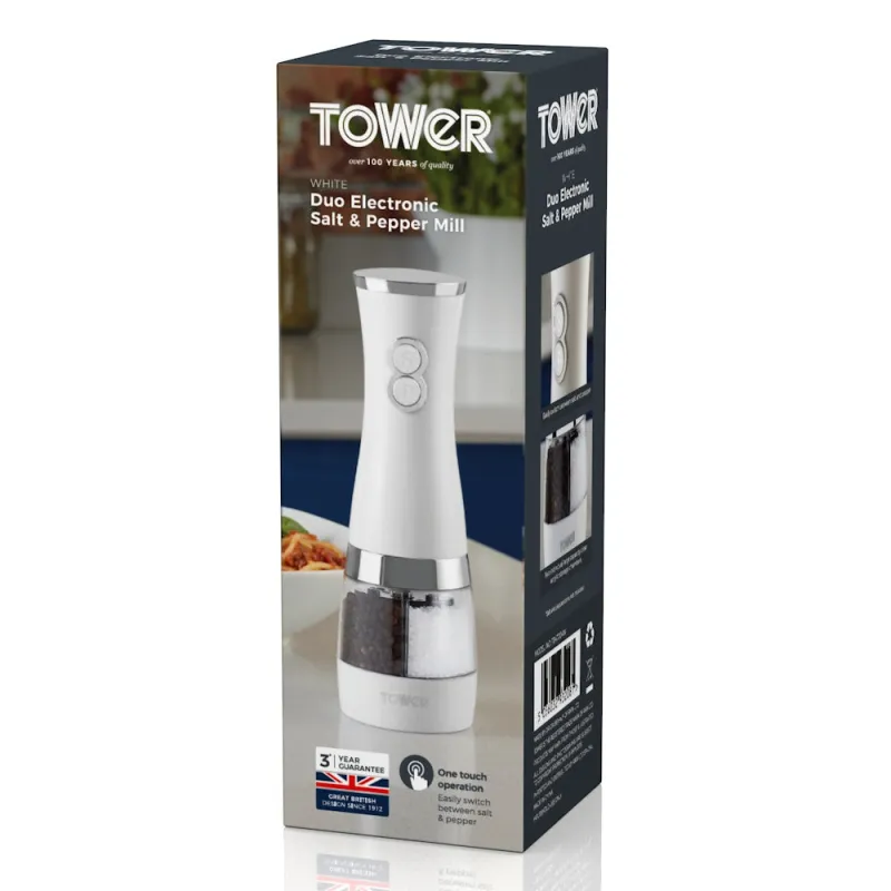 Tower Duo Electric Salt & Pepper Mill – White