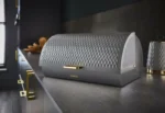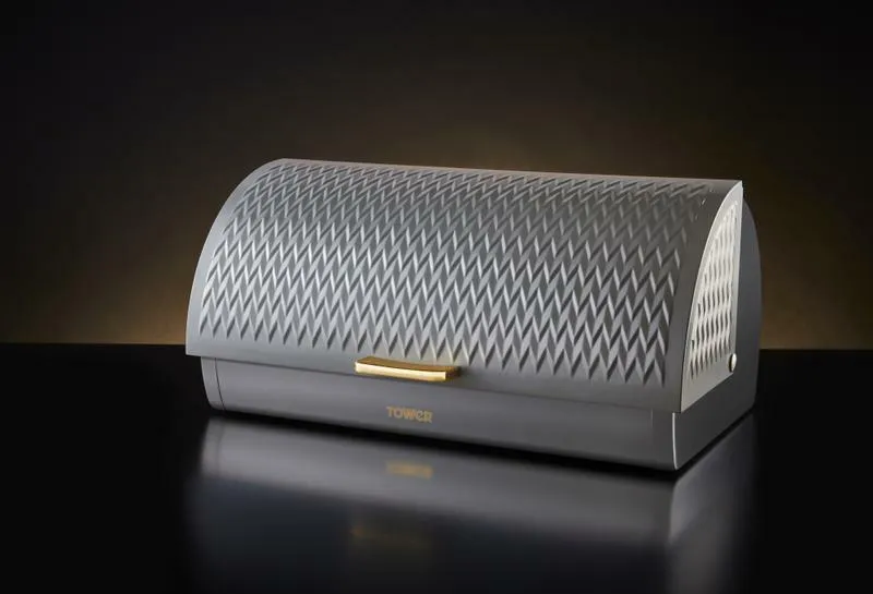 Brand New Tower Empire Contemporary Roll Top Bread Bin in Grey with Brass Accents. Ideal Kitchen Storage for Bread & Baked Produce. UK Stock, Free Delivery