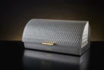 durable structure of this bread bin. Supporting a roll top lid to grant access